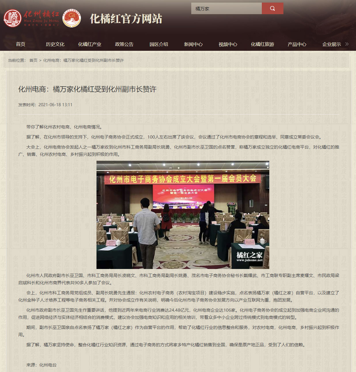 来看看橘万家化橘红的一些新闻,化州电商协会成立大会上,橘万家受到表彰: